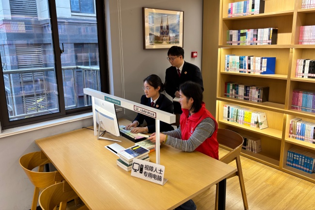 2025年10月,安徽省芜湖市镜湖区检察院干警与“益心为公”志愿者到城市书房体验无障碍阅读设施改建情况。
