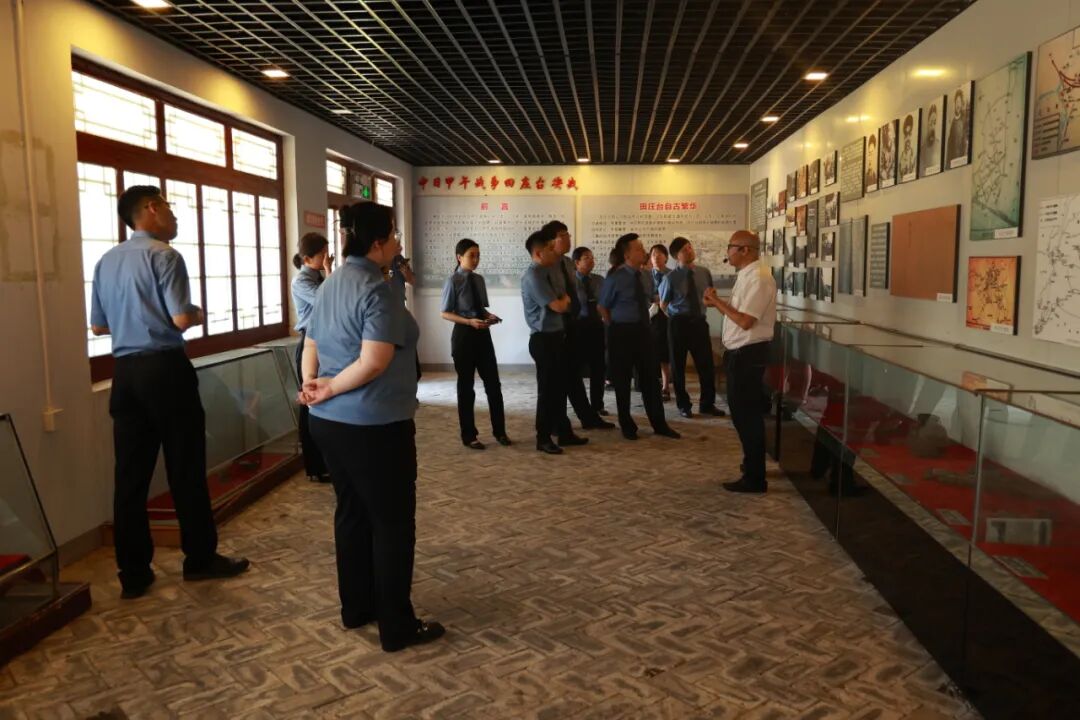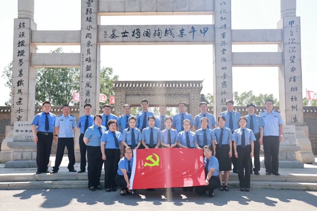 在甲午战争田庄台遗址,全体党员跟随讲解员有序瞻仰了中日甲午末战殉国将士墓纪念牌坊、将士雕像、清军阵亡将士墓和纪念浮雕,并参观了陈列室。全体党员深入了解了甲午中日战争的历史,聆听了殉国将士矢志不渝、浴血奋战的无畏战斗故事,在一个个感人的事迹中,引导广大党员“铭记历史,勿忘国殇”,厚植家国情怀、凝聚奋进力量。