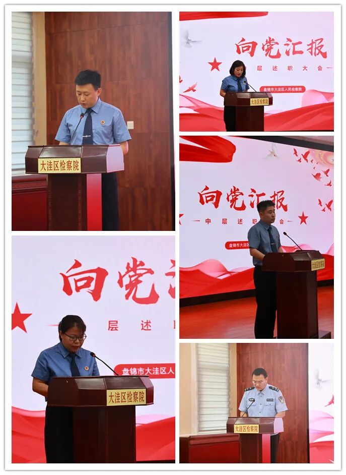 6月30日,为进一步弘扬伟大建党精神,强化党建引领,大洼检察院召开“向党汇报”庆七一主题活动暨中层述职大会。全体中层干部就2022年度担任中层干部以来的履职情况和工作成效进行履新述职,结合本职岗位,用“数据”说话,以“实绩”答卷,接受全体干警评议。通过总结成绩、查找问题、畅谈思路,分析了工作中存在的问题与不足,明确了今后的努力方向。