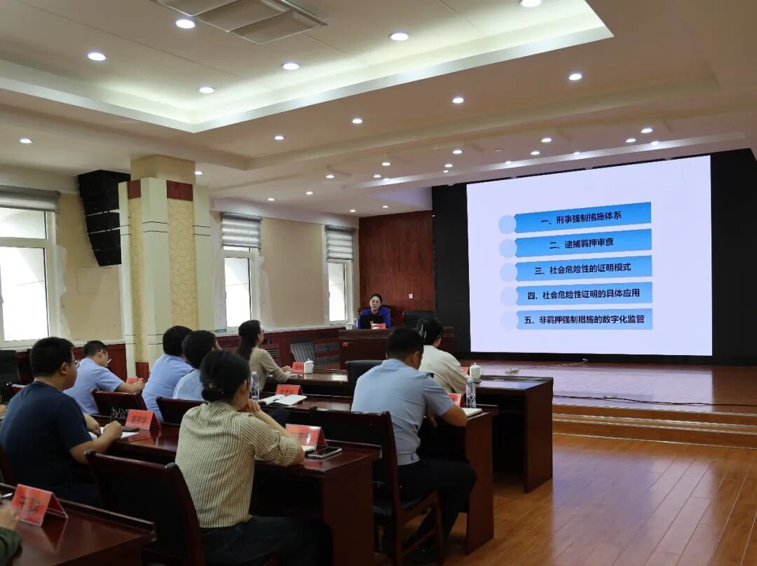 张琳博士以“逮捕羁押审查过程中理论和实践存在的问题”为核心,从“刑事强制措施体系”“逮捕羁押审查”“社会危险性的证明模式”“社会危险性证明的具体应用”和“非羁押强制措施的数字化监管”等五个方面,结合习近平法治思想,为大洼区检察院干警开展了一次别开生面的授课,授课内容既有政策解读,又有案例分析,授课主题鲜明、层次清晰、阐释透彻,使大洼区检察院干警对推进检察工作现代化的要求有了更深的理解和认识。